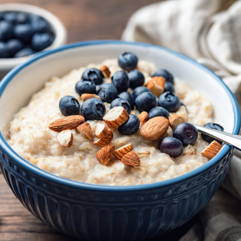 Frühstück: Haferflocken mit Beeren und Nüssen