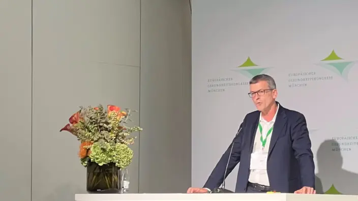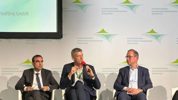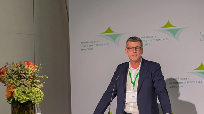 Frank Hippler, Vorstandsvorsitzender der IKK classic, spricht auf dem 24. Europäischen Gesundheitskongress über Generationengerechtigkeit