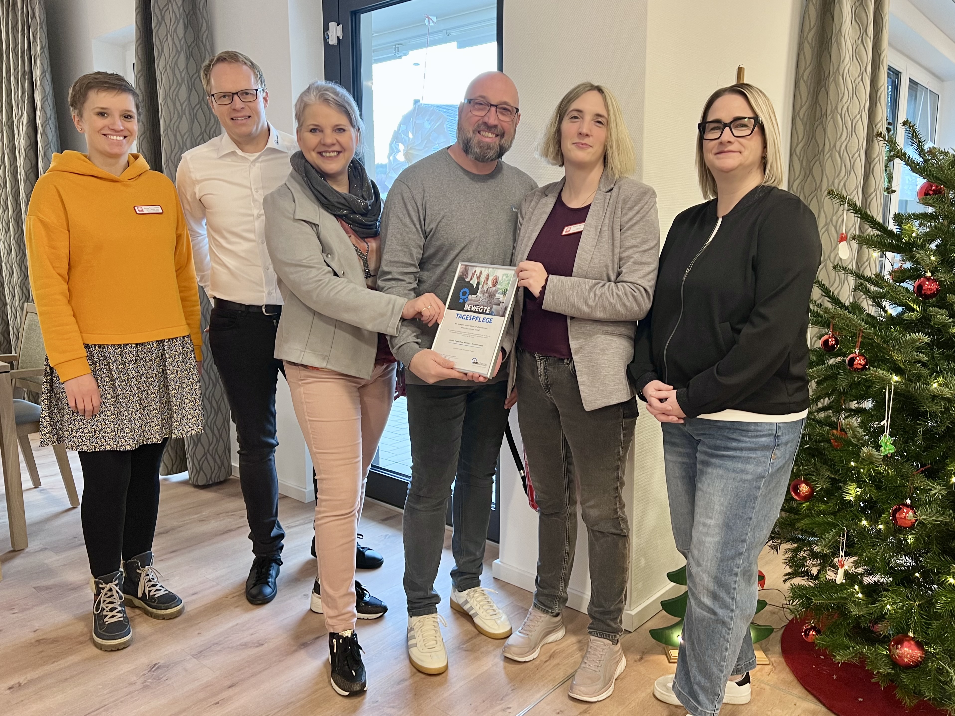 Anna Ochsenfeld (Pflegefachkraft Tagespflege Weitblick), Martin Pichocki (Gesundheitsmanager IKK classic), Marion Becker (Vorständin Caritasverband Meschede e.V.), Thorsten Michalski (Gesundheitsmanager IKK classic), Sophia Isenberg (Leiterin Tagespflege Weitblick), Dana Kohl (Qualitätsmanagement Tagespflege Weitblick)