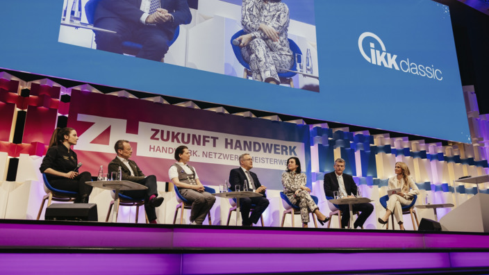 Ein Höhepunkt auf der Bühne der IKK classic war die Paneldiskussion „Stolz, stolzer, Handwerk“. Durch die Teilnahme von Dorothee Bär, Bundesministerin für Forschung, Technologie und Raumfahrt, erhielt das Forum besonderes Gewicht. Sie brachte die Perspektive der Bundesregierung ein und würdigte die gesellschaftliche Rolle des Handwerks.